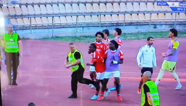 Durante essa celebração, Nilson Semedo acabou por tropeçar num assistente de recinto desportivo que andava na direção oposta à do jogador do Benfica, algo que inflamou (ainda mais) o clima.