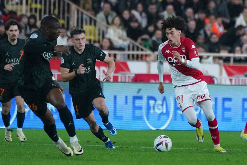 O primeiro tempo foi marcado pelo domínio da posse de bola do PSG, mas foi, na verdade, o Mónaco a causar perigo a sério. Por várias ocasiões, Ben Yedder, Minamino, Balogun e Akriouche ameaçaram a baliza do PSG, mas valia Donnarumma entre os postes, a evitar tudo o que ia no seu caminho. O encontro caminhava para o intervalo sem golos e, sobretudo, sem o Paris Saint-Germain conseguir causar perigo.