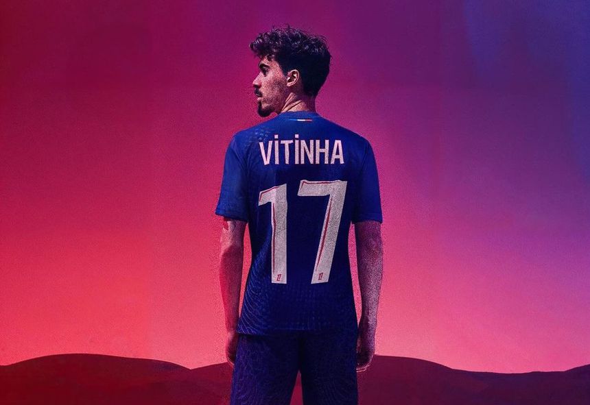 Vitinha é um dos jogadores que surgem com as camisolas, com recurso a IA (Foto: PSG/X)