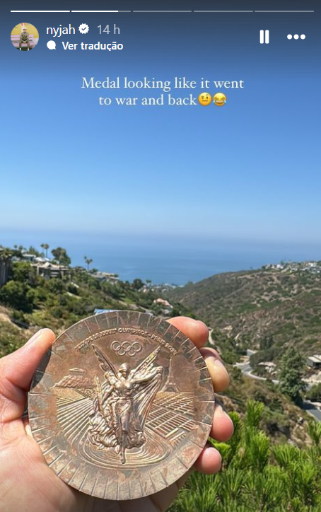 «Estas medalhas olímpicas são muito bonitas quando estão novas, mas depois de a ter deixado em contacto com a pele e de ter deixado alguns amigos usarem-na ao pescoço ao longo do fim de semana... Alta qualidade, achavam vocês. Olhem só para isto. Está gasta até na parte da frente. Não sei, se calhar é preciso melhorar um pouco a qualidade», disse o norte-americano, nas redes sociais, partilhando de seguida uma imagem com uma legenda: «A medalha parece que foi à guerra e voltou.»