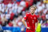 Com Alexander Bah e Morten Hjulmand no onze, desde o primeiro ao último minuto os dinamarqueses insistiram sempre em ataques muito organizados, sem nunca prescindir de uma circulação intensa, mas na verdade só chegaram ao golo numa transição, quando Bah foi lesto a fazer um lançamento lateral para Jonas Wind, que tocou de calcanhar para a finalização de Eriksen.