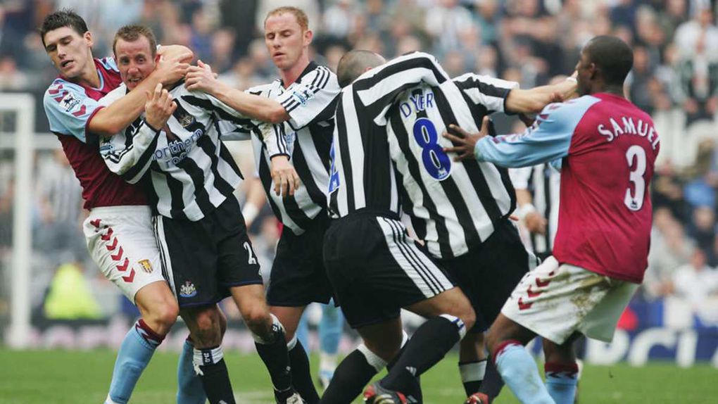 Talvez o confronto mais mediático deste género: Kieron Dyer e Lee Bowyer, colegas no Newcastle, começaram uma autêntica luta durante um jogo com o Aston Villa, em 2005. Ambos foram expulsos e a equipa perdeu por 0-3 (DR)
