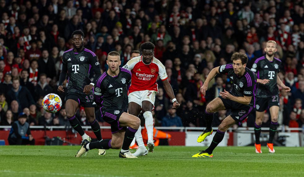 Houve logo três golos no espaço de 20 minutos, na 1.ª parte. Após uma entrada prometedora do Bayern em campo, o Arsenal tomou o controlo e Saka não demorou a abanar as redes, com um belíssimo remate em arco que bateu os reflexos de Neuer.