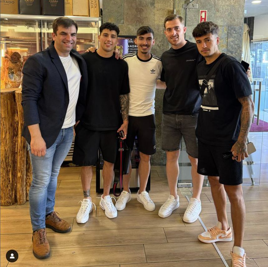 O quarteto almoçou num restaurante em Vila Nova de Gaia, que publicou a foto, e os jogadores depois partilharam-na.