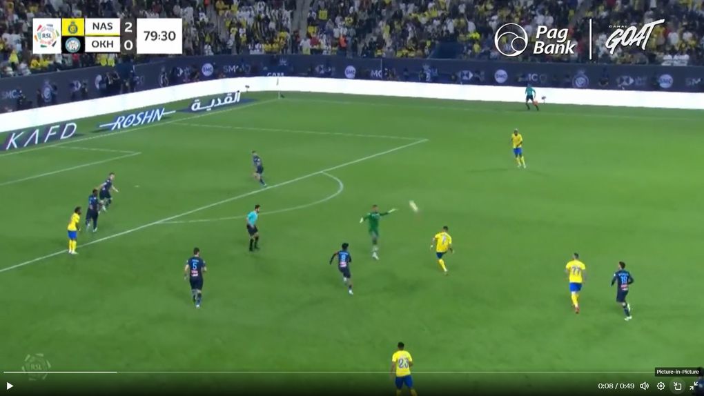 Ronaldo tinha marcado o primeiro golo (da conta pessoal, o segundo do Al Nassr) apenas três minutos antes, aproveitando também uma saída em falso do guarda-redes.