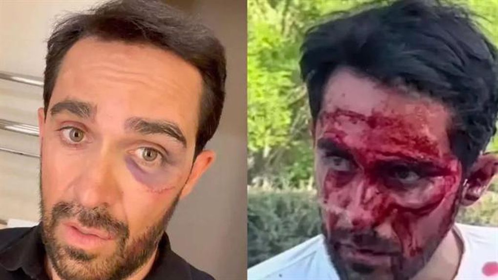 No domingo, Alberto Contador que deixou de competir no final de 2017, sofreu uma aparatosa queda, que resultou em numerosos cortes e feridas no rosto.