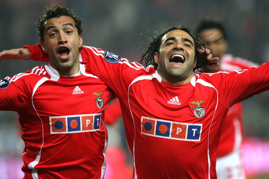 Simão Sabrosa a festejar com Fabrizio Miccoli no Benfica - Foto: IMAGO