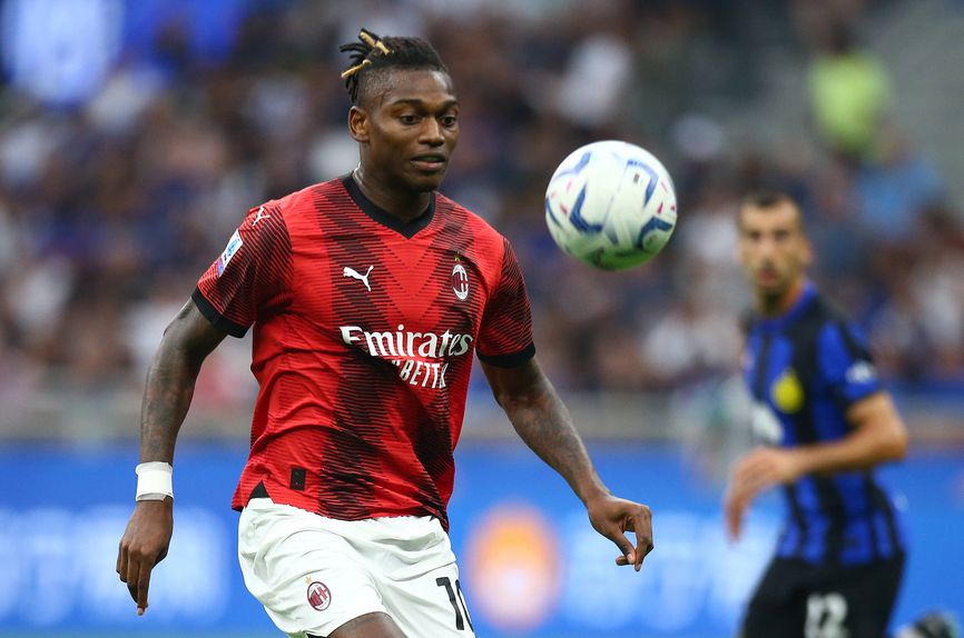 Olivier Giroud serviu Rafael Leão, o avançado português acelerou, deixou Darmian para trás e bateu Sommer para fazer o golo do Milan diante do Inter, no frenético dérbi de Milão.