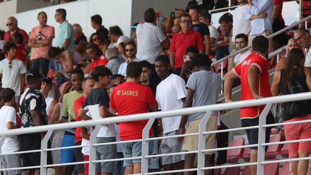 Não é, porém, o único espectador especial na bancada. Também João Neves, médio do Benfica, está a assistir à partida.