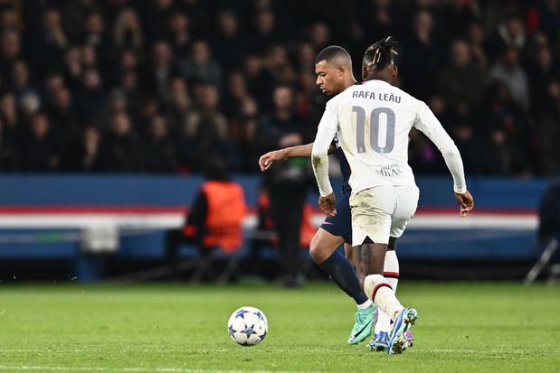 Mbappé e Rafael Leão disputam a bola no encontro entre as duas equipas na terceira jornada (IMAGO / Sebastian Frej)