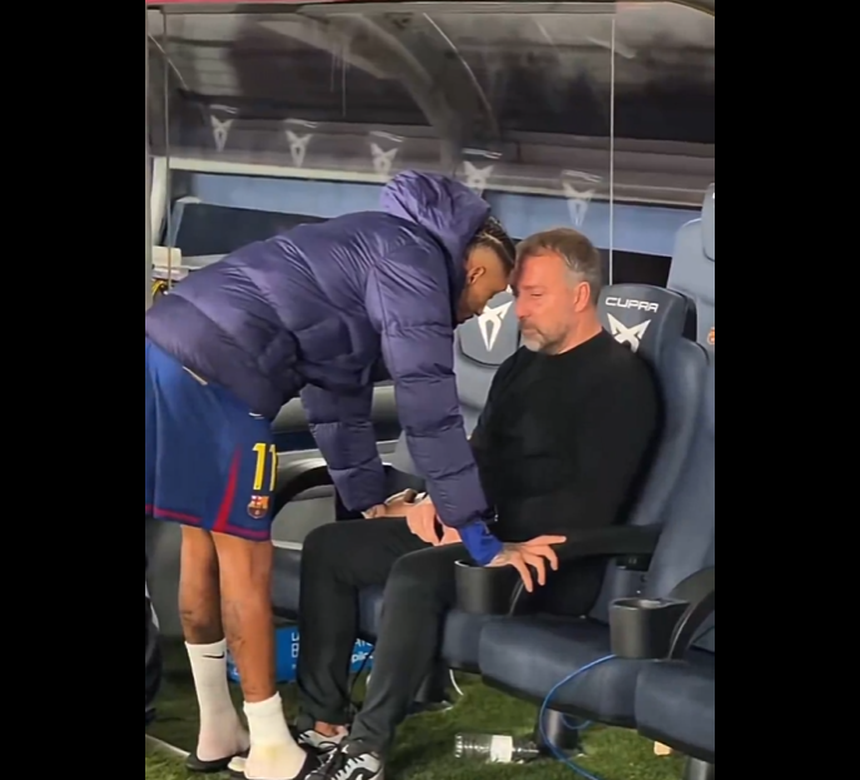 Aquando do apito final do árbitro, Flick, treinador do Barça, ficou sentado no banco de suplentes, com ar abatido. Num momento captado pelas câmaras, e que ficou viral nas redes sociais, foi Raphinha, antigo extremo do Sporting e do Vitória de Guimarães, a confortar o próprio técnico germânico.