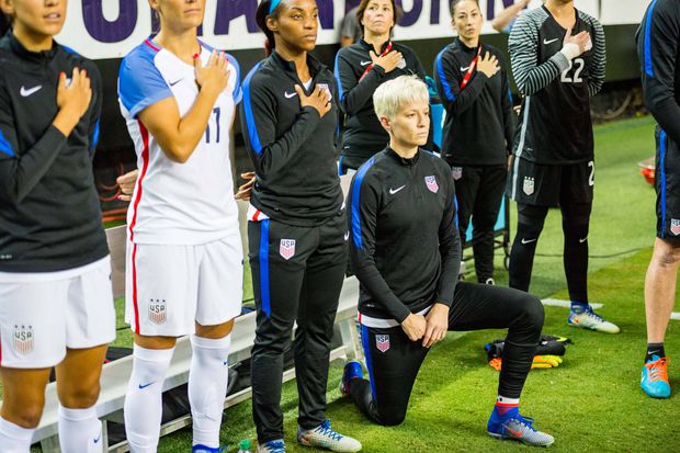Já tinha passado por várias equipas, incluindo uma experiência europeia de 2 anos no Lyon, e conquistado o primeiro Mundial, quando se ajoelhou durante o hino dos EUA. Estávamos em 2016 e Megan Rapinoe era a primeira grande atleta branca a juntar-se ao quarterback da NFL Colin Kaepernick em protesto contra o racismo e a violência policial.