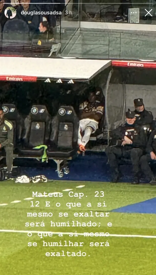 «E o que a si mesmo se exaltar será humilhado; e o que a si mesmo se humilhar será exaltado», pode ler-se na imagem publicada pelo pai do futebolista nas redes sociais, acompanhada de uma fotografia de Endrick, desiludido, no banco.