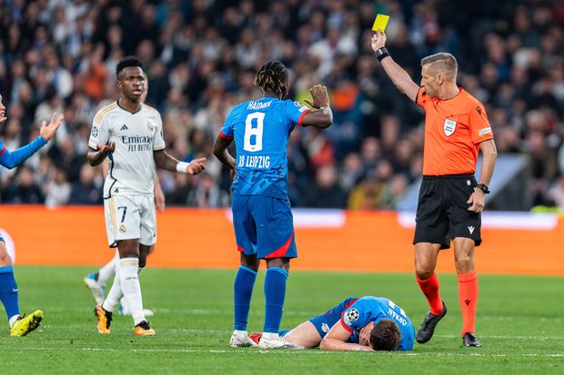 Aos 54’, momento polémico no Bernabéu. Vinícius Júnior chegou tarde a uma disputa de bola com Orbán e viria mesmo a empurrar o jogador do Leipzig na sequência do episódio. O árbitro mostrou amarelo ao internacional brasileiro, apesar dos pedidos para outra cor de cartão por parte do conjunto germânico.