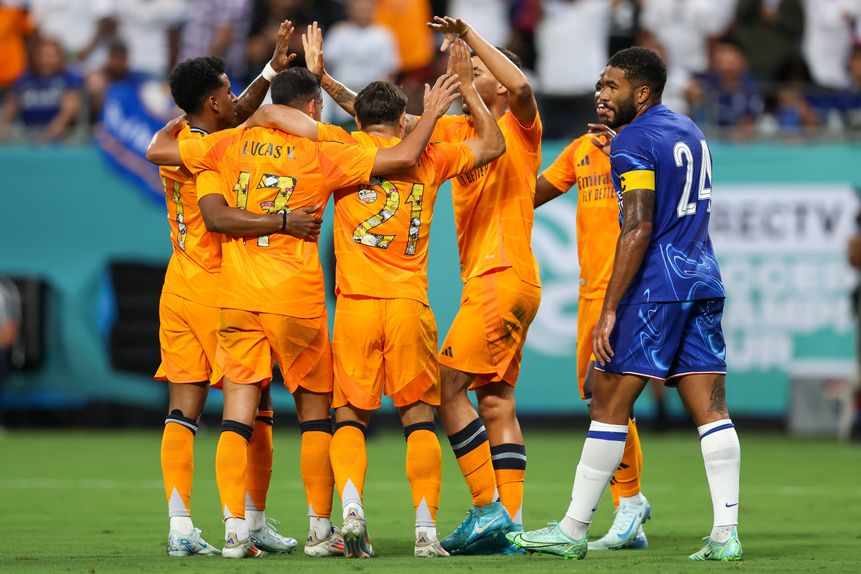 Lucas Vásquez (19’) e Brahim Díaz (27’) fizeram os golos dos merengues, enquanto Madueke (39’) apontou o tento dos blues.
