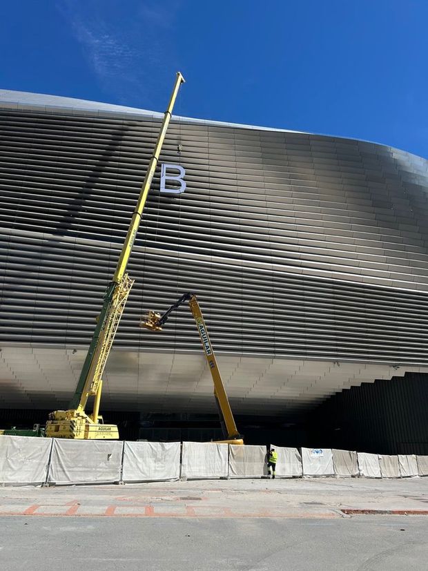 Esta semana, teve início a instalação do letreiro Bernabéu, que será colocado na fachada principal, virada para o Paseo de la Castellana. Por enquanto, os trabalhadores montaram a letra B, que se encontra coberta com uma lona como medida de precaução.