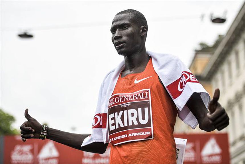 Titus Ekiru, de 31 anos, que em 2019 venceu a meia maratona disputada em Lisboa, tendo fixado o ainda recorde da prova em 01:00.12 horas, possui o sexto melhor registo de sempre na prova, com a vitória em Milão, em Itália, em maio de 2021, com o tempo de 02:02.57 horas.