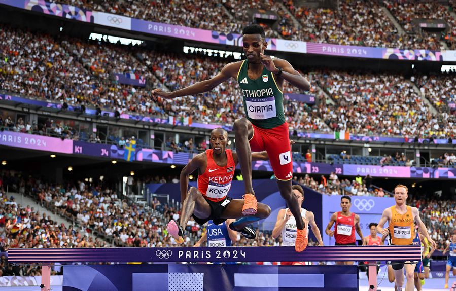 Lamecha Girma, atleta da Etiópia e recordista mundial dos 3000 metros obstáculos, caiu, esta quarta-feira, durante a final da prova em Paris 2024.