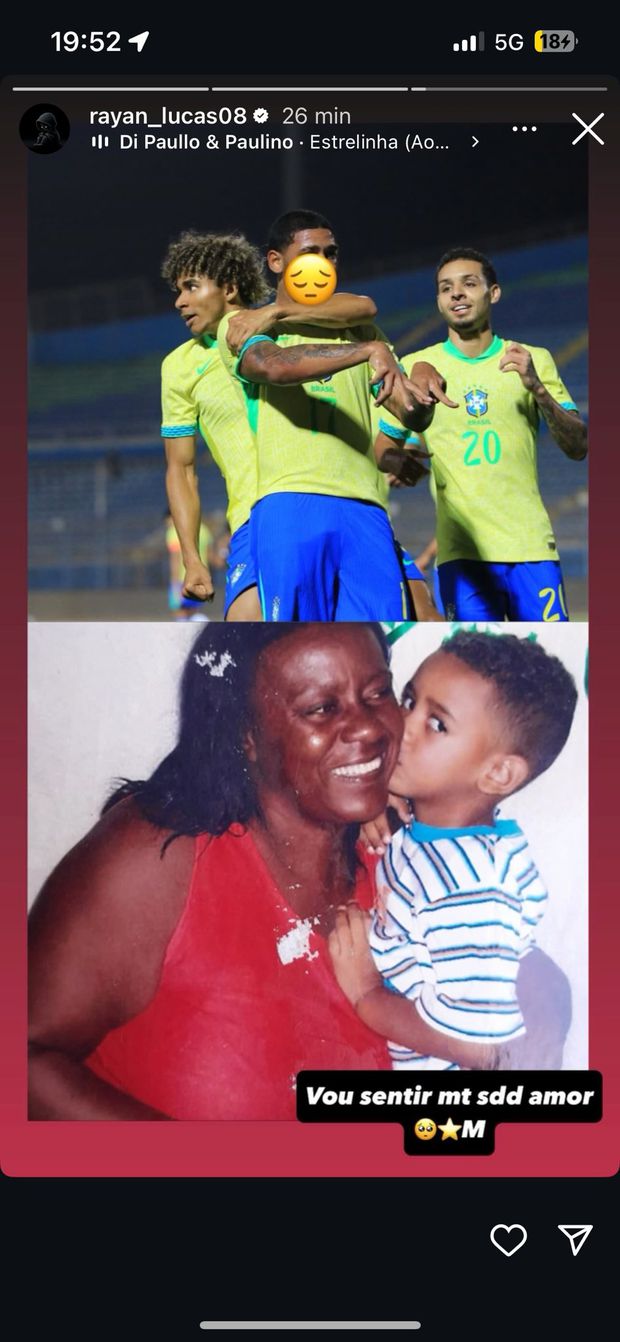 Com margem de progressão (Rayan Lucas soma alguns jogos na equipa principal do Flamengo) e um potencial que lhe tem garantido presença frequente nas seleções jovens brasileiras, o médio encerrou esta participação na seleção (após empates com a Islândia e Arábia Saudita) e prepara-se para abraçar novo projetivo na Academia. O golo apontado à Coreia do Sul teve de resto uma dedicatória especial: para a sua tia avó que faleceu recentemente. Rayan Lucas fez questão de partilhar esse momento nas suas redes sociais.