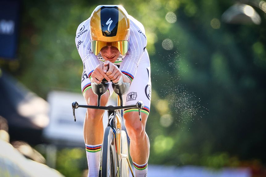 Envergando a camisola arco-íris acabada de renovar, Evenepoel foi o mais rápido em todos os pontos intermédios de cronometragem e concluiu a prova em 28.26 minutos, à uma média de 50,6 km/h, para se impor ao segundo classificado, o italiano Filippo Ganna, por 43 segundos.