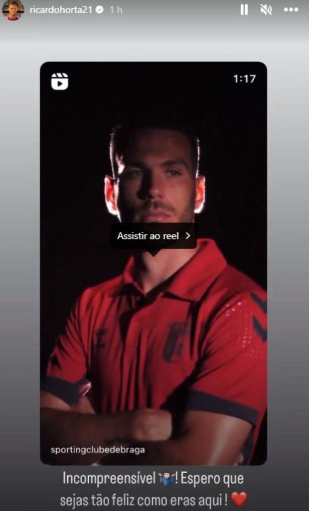 «Incompreensível! Espero que sejas tão feliz como eras aqui», pode ler-se na ‘storie’ de Ricardo Horta.
