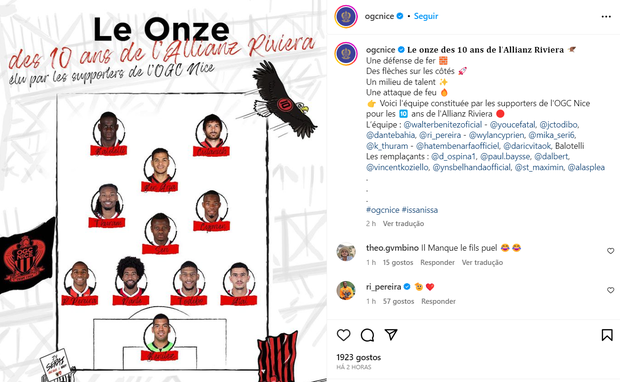 Ricardo Pereira no onze dos últimos 10 anos do Nice