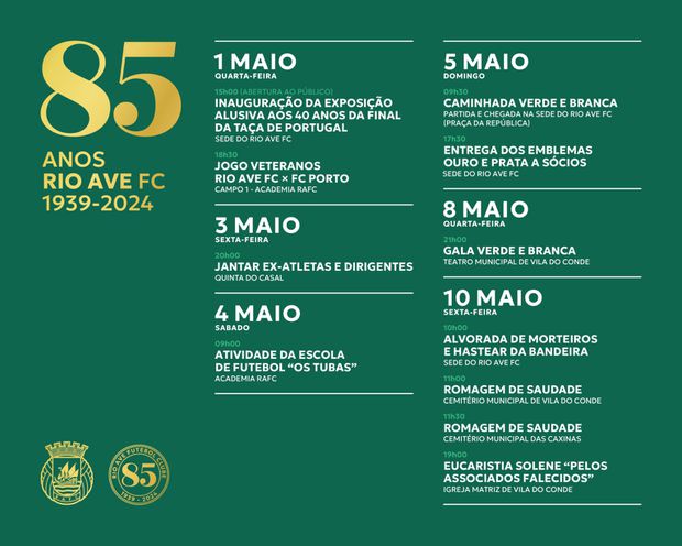 Rio Ave: conheça o programa oficial do 85.º aniversário