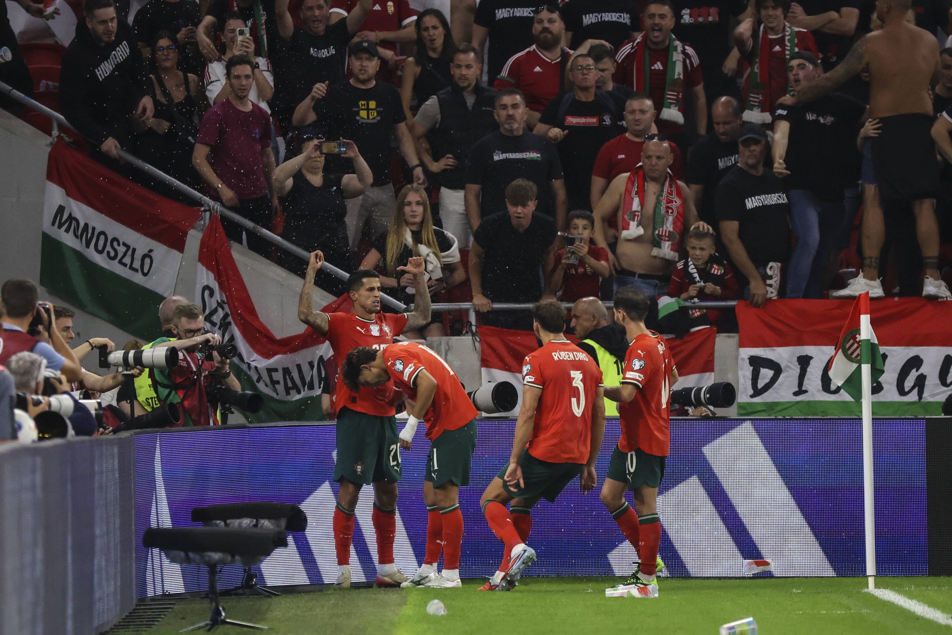 Roberto Martínez, na zona de entrevistas rápidas, defendeu que Portugal rubricou uma boa exibição na Hungria, mas destacou a existência de arestas por limar. «Merecemos a vitória. Todos os jogos são diferentes. A Hungria nao corre riscos, gosta de jogar sem bola, são muito bons no contra-ataque. Defendemos bem no geral. Adorei a atitude e o foco, faltou controlar o jogo e levá-lo para onde queremos. É um jogo perfeito para melhorar. Os jogadores que vieram do banco fizeram a diferença. é uma vitoria muito importante.»