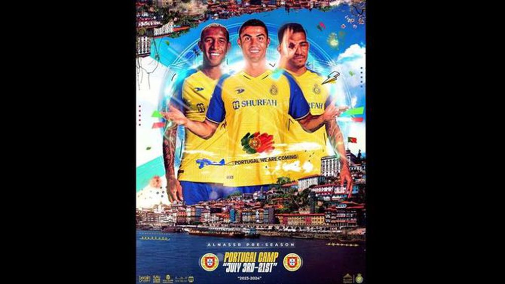 O Al Nassr, clube de Cristiano Ronaldo, anunciou que fará em julho um estágio de pré-época em Portugal. O poster que anuncia o estágio, que decorrerá de 3 a 21 de julho tem como fundo a cidade do Porto.