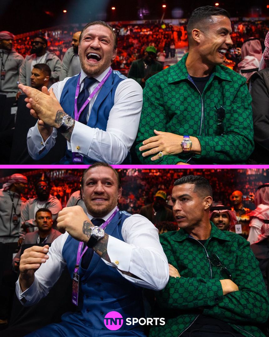 No evento Day of Reckoning, realizado, este sábado, em Riade, na Arábia Saudita, não foi apenas o boxe a chamar a atenção. Os holofotes também se voltam para as bancadas, onde está presente, nada mais nada menos, do que Cristiano Ronaldo. Porém, o internacional português não está sozinho. Em imagens captadas pela TNTSports é possível observar o momento em que Cristiano Ronaldo se encontra com Conor McGregor.