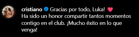 Cristiano Ronaldo não ficou indiferente ao anúncio da saída de Modric do Real Madrid depois do Mundial de Clubes.