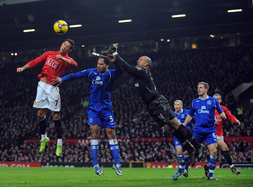 Cristiano Ronaldo e Tim Howard num duelo entre Manchester United e Everton (IMAGO / Sportimage) - Foto: IMAGO
