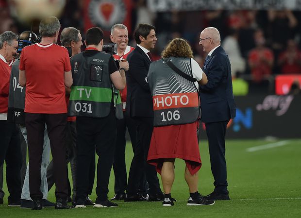 Rui Costa, presidente do Benfica, prestou homenagem a Sven-Göran Eriksson na entrada para a cerimónia dos Prémios da Liga Portugal.