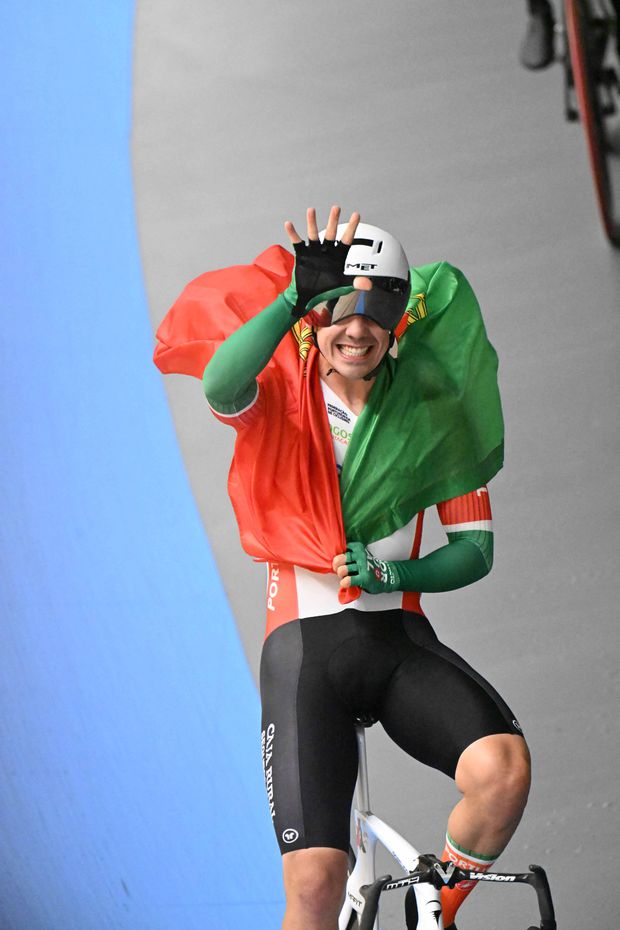 Iúri Leitão celebrou o triunfo à sua maneira. Na véspera, após o final da corrida por pontos, fizera uma vénia, que justificou com a honra que diz sentir por conquistar grandes títulos pessoais e para Portugal, e ontem mostrou a mão aberta para expressar os cinco cetros europeus que passa a ostentar no seu currículo e em seguida apontou para a inscrição do nome de Portugal na camisola.