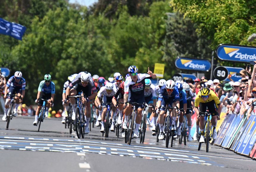 No final dos 150,7 quilómetros entre Prospect e Gumeracha, o velocista da Red Bull-BORA-hansgrohe bateu ao sprint os britânicos Matthew Brennan (Visma-Lease a Bike) e Matthew Walls (Groupama-FDJ), respetivamente segundo e terceiro, com o mesmo tempo vencedor, que é também o primeiro líder da prova.