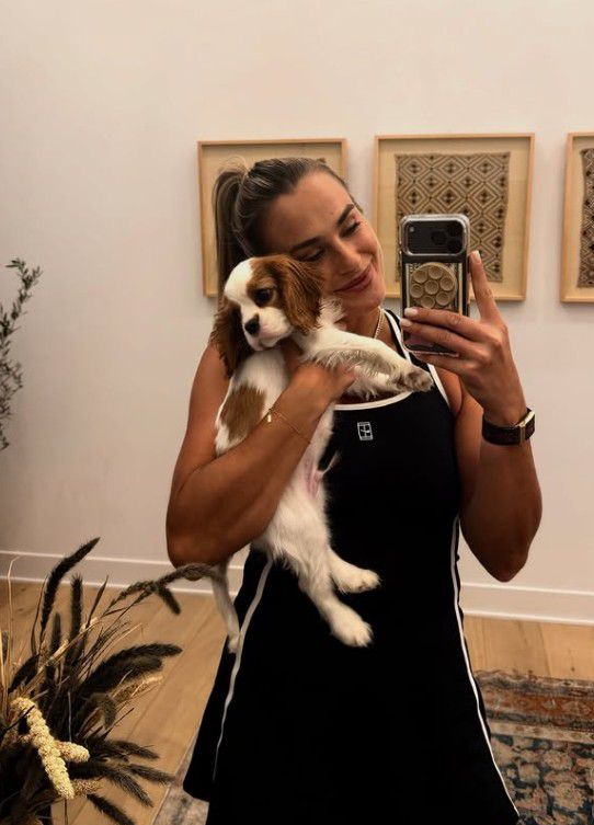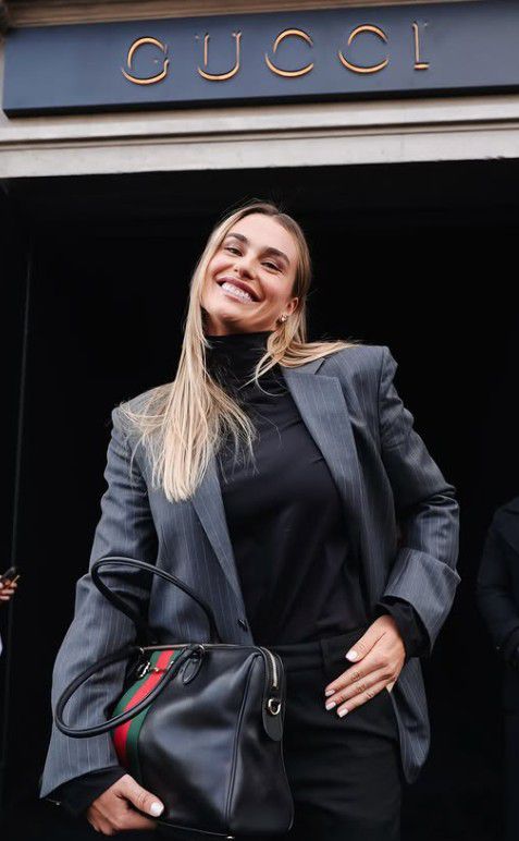 A ligação de Sabalenka à língua portuguesa vem do namoro – e agora, desde o início do mês, noivado – com o empresário brasileiro Georgios Frangulis, CEO da marca Oakberry e coproprietário do clube Le Mans.