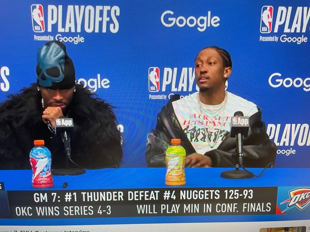A partir de um certo momento, e depois de a ter mantido bem à vista de todos com o casaco preto bem aberto, Jalen Williams bem que ainda tentou, por várias vezes, manter tapada a parte da frente da t-shirt branca que tinha vestida durante a conferência de imprensa, após a esmagadora vitória dos Thunder sobre Nuggets por 125-93 no Jogo 7 da meia-final de Conferência Oeste, no entanto, há muito, durante os primeiros minutos, que todos tinham lido o que dizia. A NBA também…