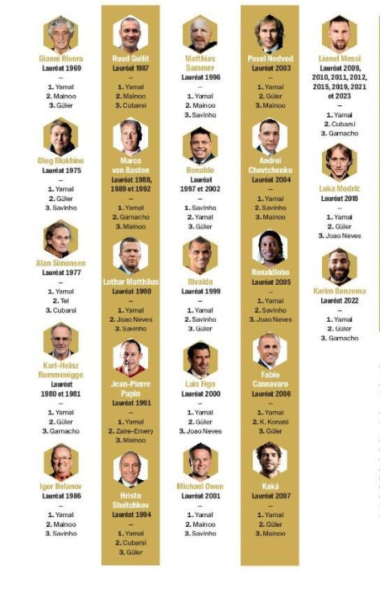 Na edição de novembro a revista revela todos os votos de todos os prémios e é possível verificar que Ronaldo Nazário, vencedor da Bola de Ouro em 1998 e 2002, não escolheu Lamine Yamal e optou pelo compatriota Savinho primeiro, e só depois Yamal.