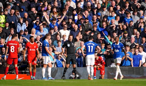 44' - Pedidos de penálti dos jogadores do Liverpool na área do Everton. Árbitro manda seguir.