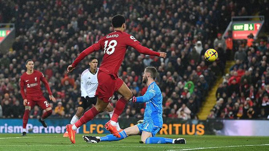 Aos 51', Gakpo, com muita frieza e enorme classe, perante De Gea, pica a bola quase sem ângulo, colocando-a no ângulo inferior direito e aumenta para dois o número de golos na conta pessoal, aumentando a vantagem do Liverpool sobre o Manchester United para 3-0, na sequência de uma jogada magnífica de Mohamed Salah, a driblar perante Lisandro Martínez, deixando-o literalmente de rastos, antes de assistir o craque neerlandês.