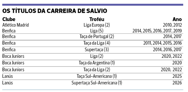 Com o 23.º título na carreira, Salvio passa a ser o quarto argentino em atividade com mais taças, numa lista com vários conhecidos dos portugueses (ver galeria).