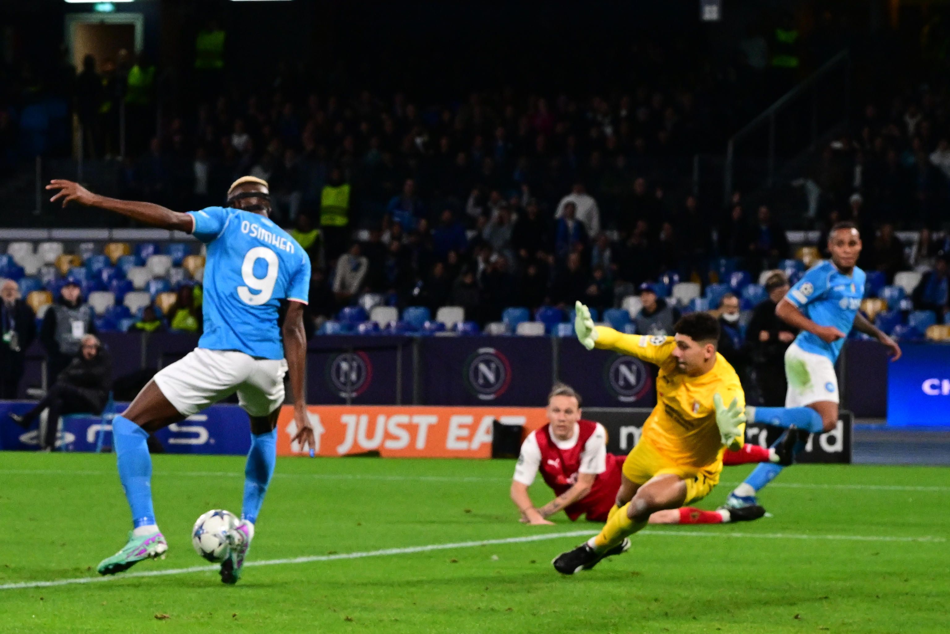 69' - Sai Osimhen, o melhor jogador africano de 2023, para a entrada de Raspadori. Também Lobotka dá o lugar a Gaetano.