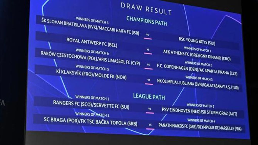 Já o vencedor do encontro entre PSV Eindhoven (Países Baixos) e Sturm Graz (Áustria) vai defrontar o vencedor do duelo entre Rangers (Escócia) e Servette (Suíça).