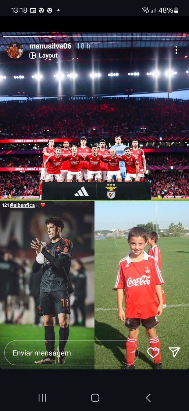Se dúvidas existissem sobre isso, o próprio jogador colocou uma storie no Intagram em que surge pequenino, vestido à Benfica, ao lado de fotos dele já no plantel principal das águias.