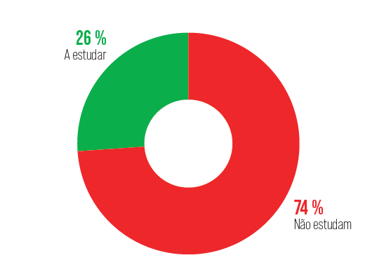 Há um dado menos positivo nos resultados apresentados (fig. 2): em relação a 2016, há menos 5% de jogadores e jogadoras a estudar, embora os que se encontram na escola (26%) estejam na sua maioria a frequentar licenciaturas (55%), mestrados (16%) e pós-graduações (2%). (fig. 3).