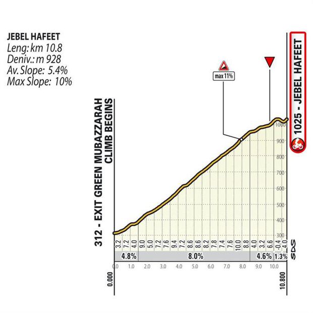 A última etapa que se corre no domingo vai decidir a geral, a ligação entre Hazza Bin Zayed Stadium e Jebel Hafeet na distância de 153 km, finaliza a 9268 metros de altitude com a meta instalada no final da subida com 10,8 km com rampas de 11 por cento. «O objetivo é vencer a geral mas vou tentar vencer a ultima etapa. Tivemos uma boa semana e a vitória no contrarrelógio por equipas até foi inesperada. Plapp e Bilbao são os principais adversários, como a subida é longa muito coisa poderá vir a acontecer e não podemos descartar uma surpresa», afirmou o líder da competição Remco Evenepoel, que parte para a ultima etapa com a vantagem de 9 segundos para Luke Plapp (Ineos) e 13 segundos para Pello Bilbao (Bahrain).