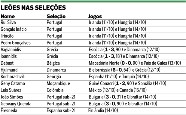 Nesta sexta-feira, dos três internacionais leoninos em ação, dois vencedores e um… empata. Ganharam João Simões e Geovany Quenda, 3-0 por Portugal sub-21 à Bulgária — João Muniz, do Sporting B, não saiu do banco. O médio entrou aos 59’ e o extremo jogou os 90'. Quem também jogou todo o jogo foi Debast pela Bélgica, empate 0-0 com a Macedónia do Norte na qualificação para o Mundial 2026.