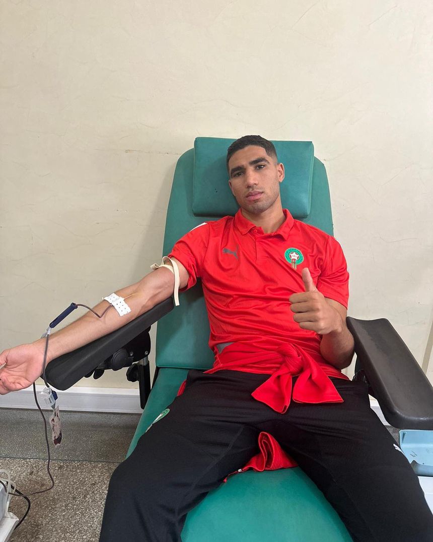 A seleção de Marrocos marcou presença no centro de transfusão de Agadir, cidade marroquina, para doar sangue para as vítimas do sismo que assolou o país na sexta-feira.