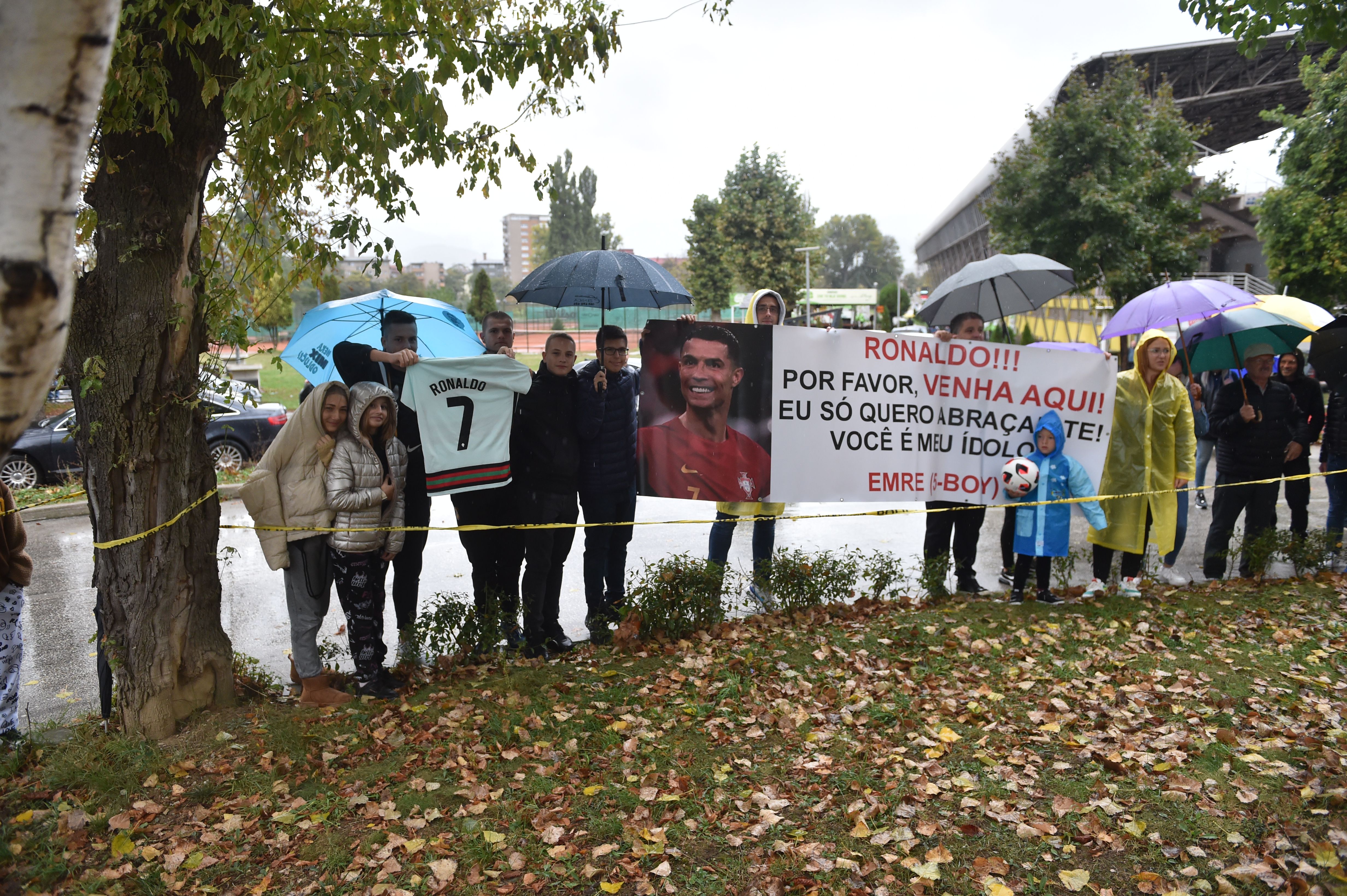 Cerca de três centenas de bósnios aguardam a chegada da Seleção junto ao hotel. Há fortes medidas de segurança que mantêm os adeptos à distância.