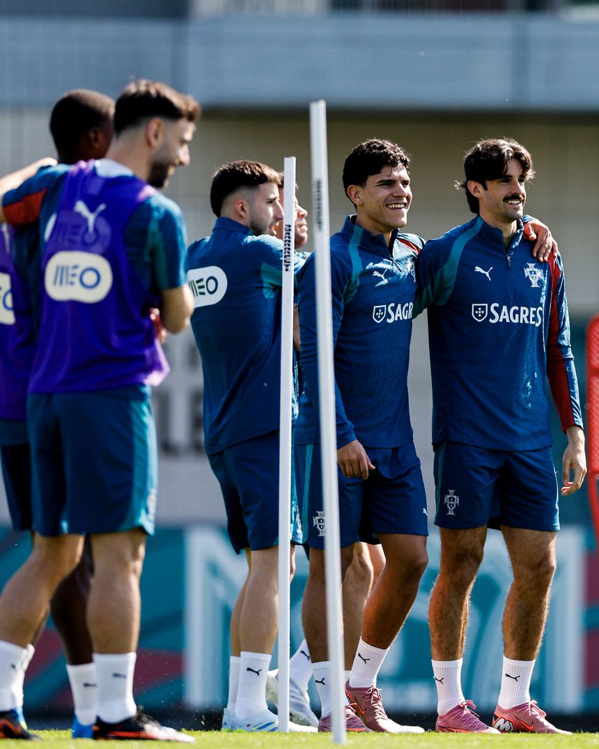 No último treino em Lisboa, Pedro Gonçalves e João Neves fizeram apenas trabalho de recuperação em bicicletas junto ao relvado.